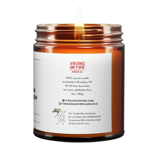 From Virgins on Fire Candle Co. these quality jar candles are made with 100% soy wax and are handmade in Brooklyn, NY using only safe phthalate-free fragrances sourced from socially responsible suppliers.