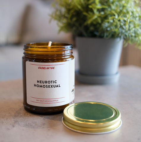 "Neurotic Homosexual" - A Sea Salt & Eucalyptus Candle to soothe your inner monologue.
